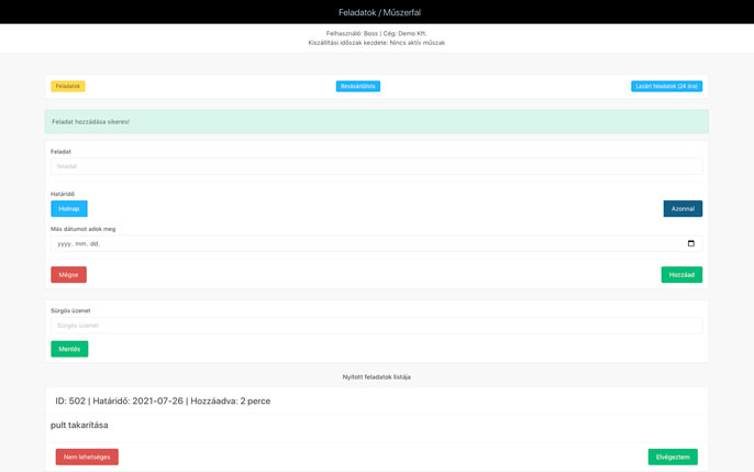 Ezen modulunk segíti kollégáidat abban, hogy jelezhessék feléd, hogy valamire szükségük van a munkavégzéshez. Tipikusan olyan események, vagy alapanyag hiányok jelzésére amely megakasztja a munkavégzést.