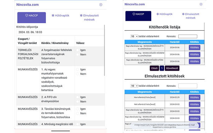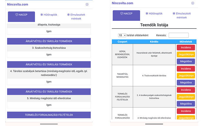 Tapasztalt HACCP szakértőnk segítségével alakítottuk ki az ellenőrzö lista modulunkat, ahova a napi, heti, havi, illetve alkalmai ellenörző listáidat rögzítheted, és azokat a megadott időzítés szerint kell kollégáidnak kitölteni. Az esetleges hibákat és azok kijavításának életciklusát pedig incidens kezelő rendszerünkön keresztül vezetheted, így mindig felkészülve egy ellenőrzésre.