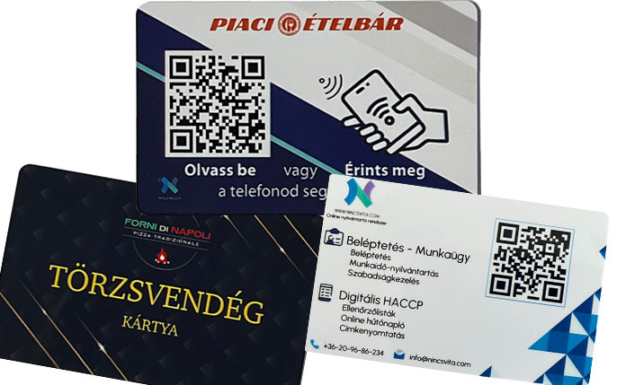 Meglévő megoldásokra építve kialakítottunk egy hüségkártya, kupon rendszert, ami jól illeszkedik megoldásaink közzé. Egyedi, személyre szabott design-nal készült hüségkártyakat rendelhetsz tőlünk, melyet ha leolvasol a nincsvitás eszközöddel, akkor egy egyszerű felületen tudod a hűségpontok számát növelni, csökenteni vagy egyedi kupont, megjegyzést hozzáadni. Ha a kártyát az ügyfeled olvassa le (NFC, QR kód), akkor pedig egy előre egyeztetett weboldalt nyit meg számára. (pl.: saját weboldalad, asztalfoglalás, vagy éppen a hűség pontjainak a számát tekintheti meg)