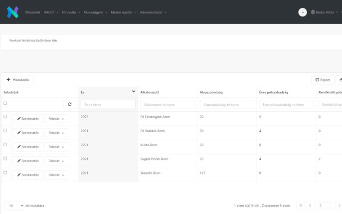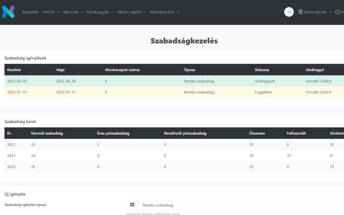Évente egyszer rögzítsd az elérhető szabad napokat különböző kategóriákba (alap, pót, rendkívüli pótszabadság). Kollégáid pedig egyszerűen tudják megigényelni a szabadnapokat, látják a már kivett és a még elérhető napjaikat, illetve aktuális és múltbéli igényléseik státuszát.